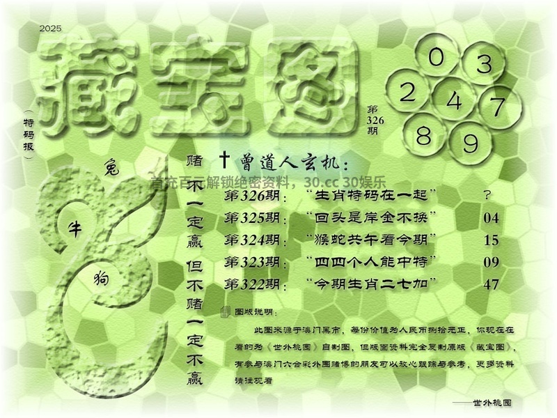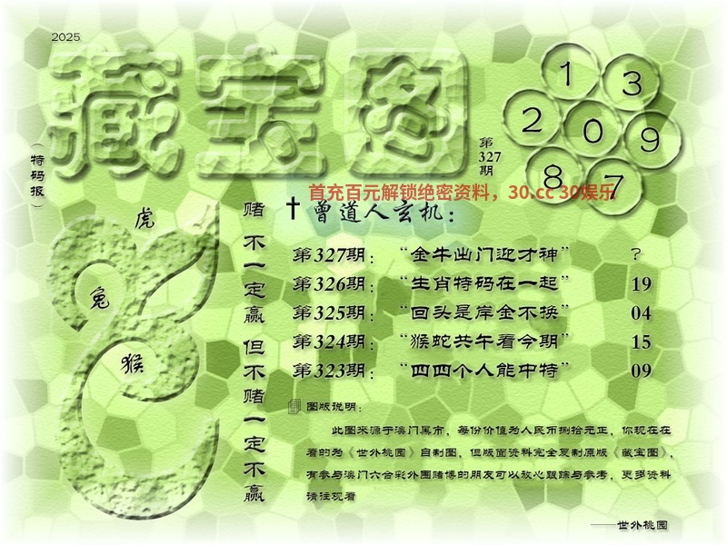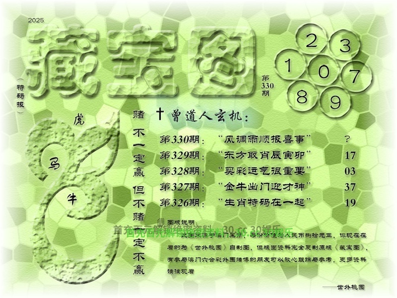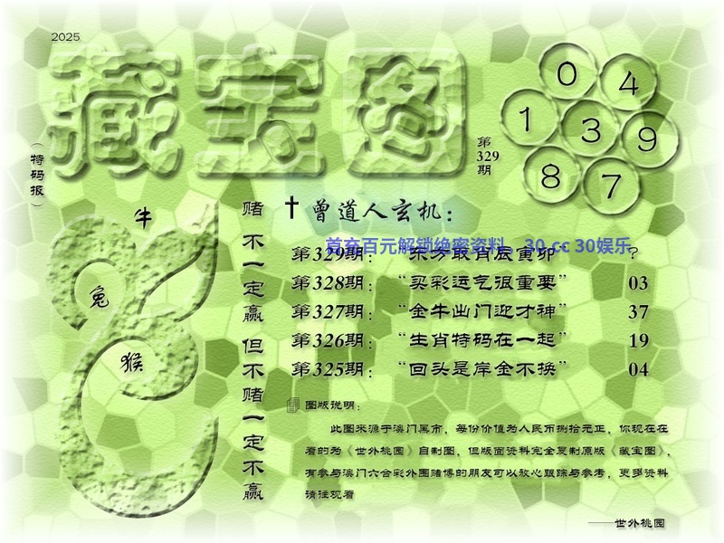 331期藏宝图曾道人玄机:更新 解:更新 解特肖:更新 |